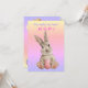 Cette adorable carte de Pâques présente un lapin de Pâques précieux et détaillé tenant un oeuf coloré à l'avant. Le texte dit : "Vous faites mon coeur HOP !" L'Arrière - plan est un jaune foncé, orange, rose, violet avec des pois blancs. Côté inverse de la carte a 4 oeufs de Pâques peints sur le fond avec un mignon petit poussin jaune debout sur l'un. En haut, une autre petite poussette sort de sa coquille d'oeuf. Le texte dit "Bonne Pâques, petit." et il est personnalisable si vous voulez le changer. Arrière - plan est le même ombre seulement en sens inverse. Une adorable carte pour le petit de la famille !