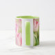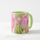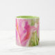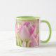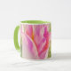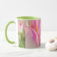 Cette jolie tasse florale présente ma photo originale de jolis tulipes roses dans un jardin, traitée avec une technique d'aquarelle pour un style illustré, peint avec une touche de fantaisie. Il a une couleur verte à l'intérieur et sur la poignée, qui peut être changée si désiré. Ce sont des tasses de 11 onces, juste la taille idéale pour votre café ou thé maison - ou même du chocolat chaud! Il ferait un grand cadeau et vous pouvez mettre des paquets de café, des sachets de thé ou du chocolat chaud à l'intérieur. Une autre idée de cadeau est de mettre un petit plante dedans pour le rendre spécial pour votre être cher.