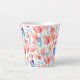 Une jolie tasse en latte avec un motif de tulipes en aquarelle sans couture.