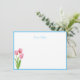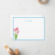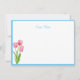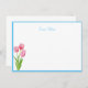 Carte de note personnalisée en blanc avec une impression mignonne de tulipes à ressort et avec un bordé bleu. Customisez cette carte et changez votre nom ou changez les couleurs.