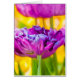 Violet coloré, violet, tulipes roses sur un lit à fleurs. Presque toutes les couleurs arc-en-ciel présentes. Scène florale lumineuse et positive. Photographie macro.