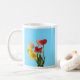 Très détaillé, concept art image réelle de la vie des fleurs. Tulipes multicolores avec arrière - plan bleu clair. Mug et design coussin correspondant.