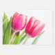 Envelopper des feuilles de papier avec une belle photo de printemps avec 2 tulipes roses et des feuilles vert vif.