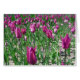Des fleurs pourpres de tulipe contre un feuillage vert frais est un spectacle éblouissant. Le violet étant souvent considéré comme la couleur du Pourcentage, il y a une certaine grâce parmi ces fleurs. J'ai planté avec soin tous ces mois il ya maintenant splendide dans leur beauté et élégance. Violet, vibrant, coloré et très beau. Magnifique pour tous ceux qui aiment les fleurs violettes et surtout les tulipes violettes. Personnaliser pour votre propre message spécial