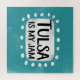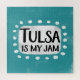 "Tulsa Is My Jam" est un design de texte amusant avec une forme d'accent blanc entourée de points blancs texturés.