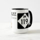 L'extérieur de la tasse comporte une base blanche lumineuse tandis que la jante et la poignée sont avec éclat glacées dans une couleur riche de votre choix.