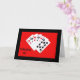 Six "10s" de ponts de cartes à jouer, photographiés contre un arrière - plan rouge vif avec une bordure noire, font l'objet de ma carte d'anniversaire "Turning 60 Is A Big Deal". Les six "10s" totalisent 60 et c'est une grosse affaire !