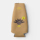 Ce superbe glacière de bouteille présente un dessin amusant d'une dinde aux grands yeux noirs, un petit bec jaune et des plumes de queue qui s'accrochent. Les pieds sont orientés dans des directions opposées, ce qui rend la dinde maladroite. La dinde tient un ballon jaune avec un message à l’intérieur qui dit "c’est l’heure de la dinde". C'est un design de fête de grâce amusant. Il y a du texte personnalisable sur le devant pour que vous puissiez personnaliser votre glacière de bouteille.