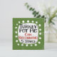 Un drôle de design typographique qui dit "Turkey Pot Pie : Can Recommend, 5 Etoiles". C'est du texte en noir et rouge sur un rectangle blanc avec des points blancs amusants autour, le tout sur un arrière - plan vert.