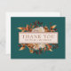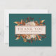 Turquoise Automne Terracotta Feuilles Fleurs Carte de remerciements. Cette élégante et rustique carte de remerciements mariage est ornée d'une aquarelle peinte à la main, de feuilles en terre cuite et orange, de dahlias crème et beige, et de beaux roses couleur rouille, parfaits pour un mariage automne ou automne ! L'arrière de la carte de détails a un arrière - plan blanc. Ce design fait partie de la collection Romance d'automne que vous pouvez voir en cliquant sur le lien ci-dessus.