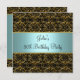 Elégante invitation de soirée 50e anniversaire turquoise bleu noir et or damassé femme. Customisez avec votre choix de style de police et de couleur de police.