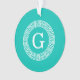 Turquoise Blanc Clé grecque Cadre Ronde Monogramme