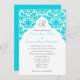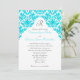 Turquoise, Blanc, Noir Damas Invitation Monogrammé
