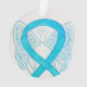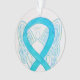L'ornement de fête de l'ange gardien présente la peinture d'un ange ruban bleu turquoise de conscience. L'art ruban de l'ange de conscience bleu turquoise peut être customisé de messages personnalisés pour faire des ornements de grande cause ou des pendentifs pour des collectes de fonds, la sensibilisation, des cadeaux de Noël ou de vacances, ou d'autres événements ou occasions spéciales.