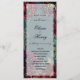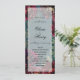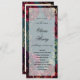 Un programme turquoise de mariage bleu et bordeaux pour bijoux teinte pour correspondre au faire-part de mariage du même nom. Ce programme présente la frontière de l'invitation, une symphonie de tourbières rouges framboises bordeaux profondes agrémentées de bombes d'or et de contours dorés chatoyants sur un arrière - plan bleu turquoise profond de lavage à l'eau, avec insert opaque à l'avant et insert blanc solide à l'arrière pour l'écriture.