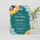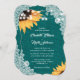 Cet élégant et romantique faire-part de mariage fleuri avec des tournesols contre un burlap et arrière - plan dentelle est parfait pour inviter vos invités à votre mariage turquoise rustique inspiré des tournesols. Facile à personnaliser le modèle. Conception entièrement personnalisable.