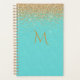 Elégant planificateur quotidien / mensuel fait en turquoise avec des graphiques de parties scintillant dorée, en haut. Personnalisez le monogramme d'une lettre pour répondre à vos besoins.