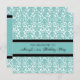 Personnalisé 21e anniversaire invitations de fête dans élégant bleu turquoise, noir et blanc classique motif damassé floral classique. Ajoutez votre nom et les détails de votre fête pour une invitation unique et élégante à la fête du 21e anniversaire.