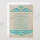 Invitation élégante et sophistiquée Elegant Deco Graduation avec une texture vintage look arrière - plan et une paire de bordures tourbillonnantes art déco turquoise. Ce bel invitation diplômé est un choix élégant pour inviter amis et famille à la maison ouverte de votre diplômé. Facile à customiser, ajoutez simplement les détails de votre fête. Cliquez sur "Customiser" pour trouver d'autres options de personnalisation.