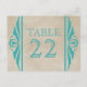 Turquoise Elegant Déco Numéro de table Carte posta