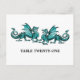 Turquoise Elegant Dragons Numéro de table Carte po