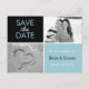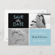 Enregistrez les cartes postales Date photo avec votre choix d'ajouter 1 ou 2 photos. Laissez dans la photo du fond du coeur dans le sable si vous le souhaitez. Design chic noir et bloc aqua avec un modèle facile à utiliser - il suffit d'ajouter les noms de la Mariée et de la Salle, ainsi que la date mariage dans l'espace prévu.