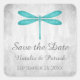 Mariage élégant et simple Enregistrer les stickers Date avec une libellule turquoise contre un arrière - plan gris grunge. Ce design est un choix unique pour annoncer un mariage moderne. Facile à customiser avec vos détails mariages. Cliquez sur "Customiser" pour trouver d'autres options de personnalisation.