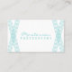 Elégante et professionnelle, la Carte de visite moderne déco avec un design art déco simple rayé croisé à éclos en bleu turquoise et blanc. Cette carte de profil tendance et chic peut être facilement customisée avec vos détails d'affaires et est parfaite pour des domaines créatifs comme la photographie. Pour plus d'options de personnalisation, cliquez sur Personnaliser.