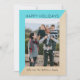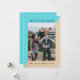 Carte Flat moderne moderne tendance et élégante avec une bordure à deux tons géométriques chic et stylée, d'un côté en turquoise et de l'autre avec un arrière - plan de texture fausse papier beige. Cette carte photo classique et moderne peut être facilement customisée avec une photo et un accueil de Noël personnalisé. Pour plus d'options de personnalisation, cliquez sur Customiser. Photographie © Storytree Studios, Stanford, CA