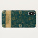 Cet élégant turquoise foncé et or Coque-Mate à peine There iPhone X Coque a un ton sur ton turquoise rayé motif avec un rose or et tourbillonne motif sur le dessus. Le coque a une large bande d'or en bas qui est personnalisée avec un nom ou un autre texte.
