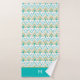 Ce joli ensemble de serviettes de bain est composé d'un motif triangulaire en forme de triangle et de cercle dessiné à la main. Les couleurs utilisées sont le bleu d'eau vive et l'orange. Le motif est placé sur un arrière - plan blanc. La grande serviette de bain a la motif comme caractéristique principale, avec une bordure bleue assortie qui tient votre monogramme en blanc. La serviette à main et le linge de toilette assortis ont le motif comme bordure inférieure, avec le bleu aqua solide au centre. Magnifique !