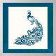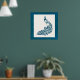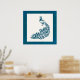 Une affiche avec l'image d'un paon turquoise avec des plumes fantaisistes. Placez-vous sur un arrière - plan d'aquarelle turquoise avec un carré couleur crème superposé. Un style art déco audacieux. Moderne et élégant