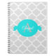 Créez un journal unique et unique avec un Carnet photo Spiral personnalisé Turquoise Quatrefoil. Carnet design dispose d'un simple arrière - plan de quatrefoil et emblème de fantaisie à personnaliser avec votre nom et monogramme. Autres cadeaux disponibles avec ce design ainsi qu'une variété de couleurs.
