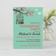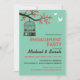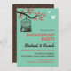 Faire-part de mariage rustique avec cage d'oiseau vintage accrochée à un arbre et deux inséparables volant librement. Décoré de motif vintage au dos de la carte. Customisez le libellé pour la douche nuptiale, le baby shower, la fête de fiançailles, la fête de bachelorette, la fête du barbecue, l'anniversaire, les anniversaires et bien plus encore. Obtenez la carte RSVP correspondante, timbre-poste et autocollants de ma boutique zazzle.