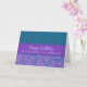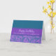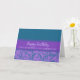 Jolie et réfléchie carte de voeux pour l'anniversaire de la fille en droit avec tourbillons turquoises et violets et texte de style lettré à la main.