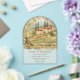 Make an unforgettable first impression with this Tuscan Vineyard Arch Acrylic Wedding Invitation. Crafted from crystal-clear, high-quality acrylic, this modern arch-shaped invite features a stunning watercolor landscape of an Italian villa and rolling vineyard hills. Framed by an intricate golden vine arch with white grapes, the design appears to float, offering a sophisticated 3D effect that traditional paper cannot replicate.