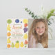 Commencez la fête avec cette invitation à l'anniversaire "Tutti Frutti", amusante et fruitée ! Doté de couleurs tropicales vives et d'illustrations de fruits ludiques comme des fraises, des citrons, des kiwis et des ananas, cet invitation est parfait pour un joyeux bain d'anniversaire d'été. Idéal pour les enfants de tous âges, ce design modifiable facilite l'ajout de vos informations de fête personnalisées. Une façon vibrante pour les clients invitations à une fête douce et ensoleillée!