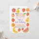 Jetez un doux bain d'été avec cette invitation tutti frutti anniversaire! Emballé d'illustrations fruitées de fruits tropicaux, comme des bananes, des fraises, des ananas et des agrumes, ce design gai est parfait pour une fête d'enfants avec une touche fruitée. Idéal pour les anniversaires en plein air, les soirées splash ou les thèmes tropicaux. Entièrement modifiable pour correspondre aux détails de votre événement!