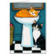 Carte de note orientée de chat mignon comportant une illustration de chats dans la salle de bains. Un chat tigré de gingembre dort paisiblement dans l'évier et un smoking se repose sous regarder avec fixement de grands yeux verts. Perfectionnez pour envoyer aux amoureux de les chats et à l'utilisation pour n'importe quelle occasion. Personnalisez le message intérieur ou le supprimez pour un blanc à l'intérieur. © Lisa Marie Robinson d'illustration. Tous droits réservés.