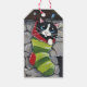 Tuxedo Cat dans un stock rayé étiquettes cadeaux