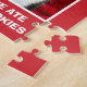 Ce mignon puzzle de Noël de chat en smoking présente une photo d'un chat en smoking avec sa langue en portant un arc de Noël. En dessous de la photo se trouvent les mots, "Quelqu'un a mangé des cookies Père Noël." C'est un grand casse-tête pour l'amoureux des chats. Copyright peachesthetuxedocat