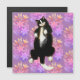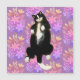 Aquarelle d'un tuxedo chat noir et blanc, arrière - plan floral.