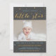 Twinkle scintille petite étoile première anniversaire invitations pour un garçon, avec une photo personnalisée de bébé et bleu et d'étoiles or contre un arrière - plan couleur gris tableau noir. "Twinkle, petite étoile scintillante, un an est ce que vous êtes !" est en or et bleu, avec les détails de la fête de premier anniversaire ci-dessous. Vous pouvez aussi les cartes comme annonce de premier anniversaire.