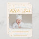 Twinkle scintille petite étoile première anniversaire invitations pour un garçon, avec une photo personnalisée de bébé et bleu et étoiles d'or contre un arrière - plan crème simple sophistiqué. "Twinkle, petite étoile scintillante, un an est ce que vous êtes !" est en or et bleu, avec les détails de la fête de premier anniversaire ci-dessous. Vous pouvez aussi les cartes comme annonce de premier anniversaire.