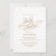 Petit confetti étoiles scintille et scintille dans un effet de parties scintillant dorée autour du bord de cette invitation simple et douce baby shower blanc et or, avec un script d'effet parties scintillant or lisant, "Baby shower". Parfait pour une douche chic ! Oeuvre originale de Colleen Michele. Veuillez noter qu'il n'y a pas de véritable effet de parties scintillant or ou de feuille d'or sur les étoiles et le script ; aucune parties scintillant, feuille d'or ou encre métallique ne sera utilisée dans cette invitation.