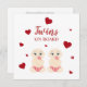 This baby shower invitation for twins has à modern and fun design with à des babies illustration in red and hearts.
