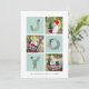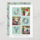 Partagez vos vœux de fêtes avec ces cartes de Noël photo présentant trois de vos photos carrées préférées dans une mise en page en grille, alternant avec "JOIE" en typographie festive formée de plantes botaniques de Noël et de fleurs de fêtes. Ajoutez le nom de votre famille ou les noms et l'année le long du bas. Les cartes se retournent sur un motif botanique de fêtes assorti sur un vert sauge festif clair.