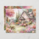 Un paysage automnale avec des arbres de chute et des feuilles, des fleurs de chute et des citrouilles avec un cottage très mignon et vintage au centre, dans les couleurs pastel aquarelle peinture avec nom personnalisable