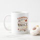 Venez dans l'esprit d'automne avec cette tasse de café typographique avec l'expression "épices citrouilles et tout ce qui est bien, c'est ce dont l'automne est fait" avec des icônes de favoris d'automne comme les citrouilles, des marshmallows torréfiés, lattes, dinde, tourte, feuilles et glands.