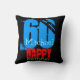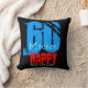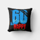 Design typographique avec grand numéro bleu + nom en bleu + lettrage humoristique pour Happy en rouge + anniversaire en jaune. Conception sur coussin carré avec texte pour 60e anniversaire à la personnaliser. Vous pouvez facilement modifier le texte (police, couleur, taille et position) en cliquant sur le bouton personnaliser. Carte de voeux correspondante. Parfait pour lui.